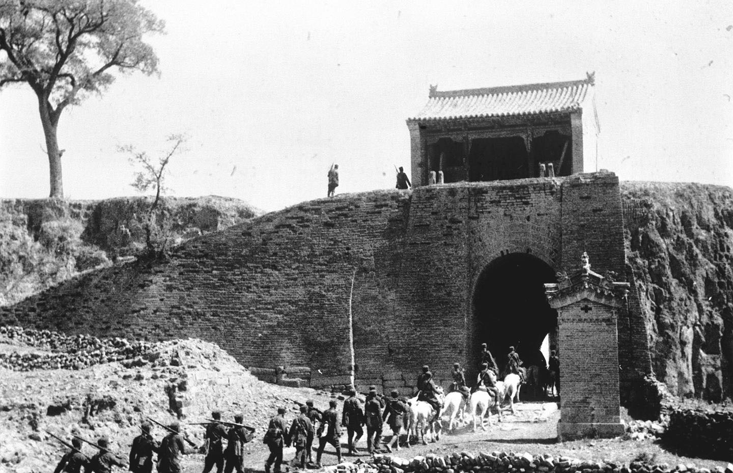 1937年平型关大捷后,我军通过平型关。新华社发