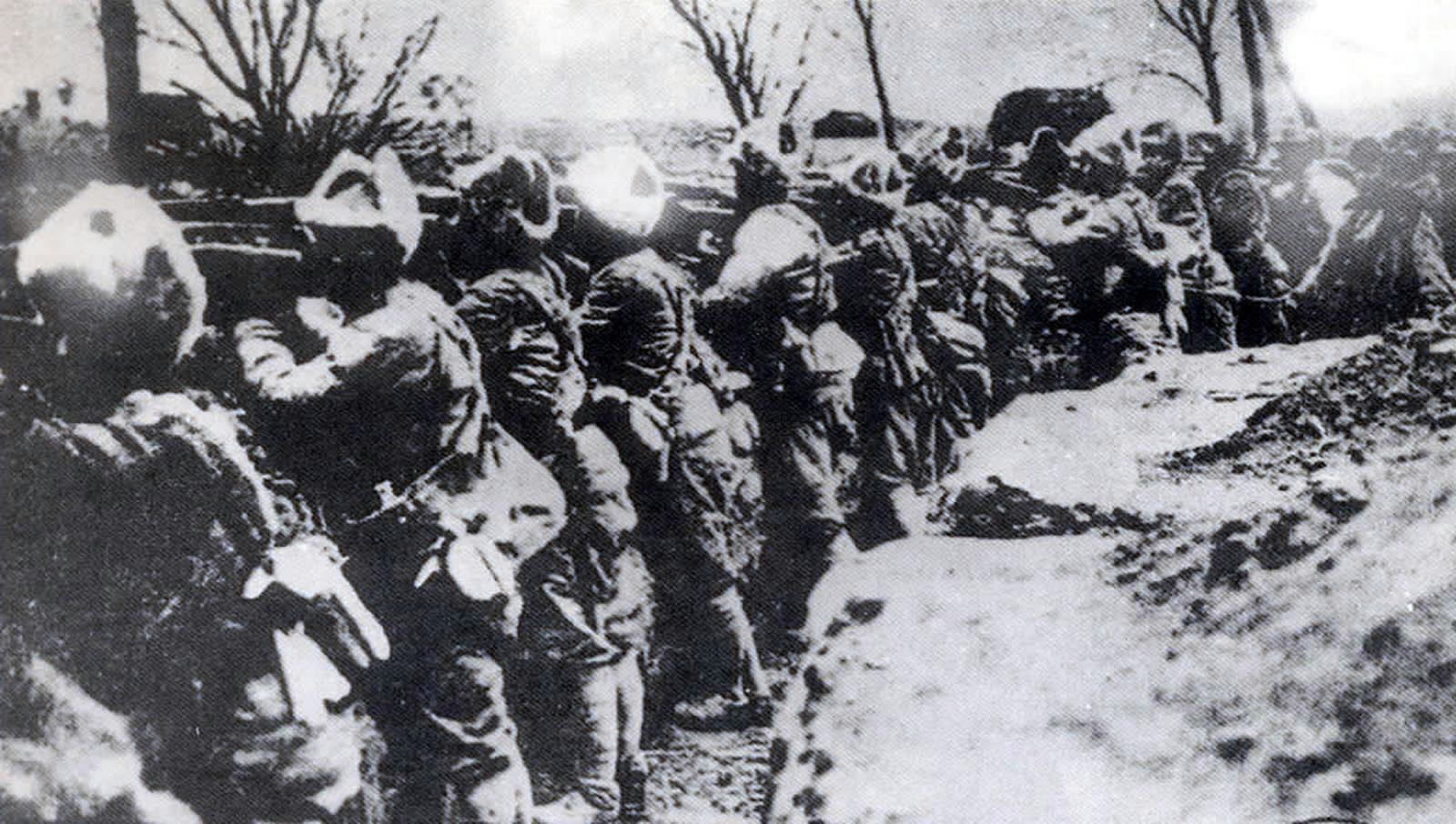 1931年9月18日,日本帝国主义蓄意在中国制造了震惊中外的九一八事变,进而侵占了中国东北地区。这是辽西义勇军老梯子队在阵地上抵抗日军进攻。新华社发