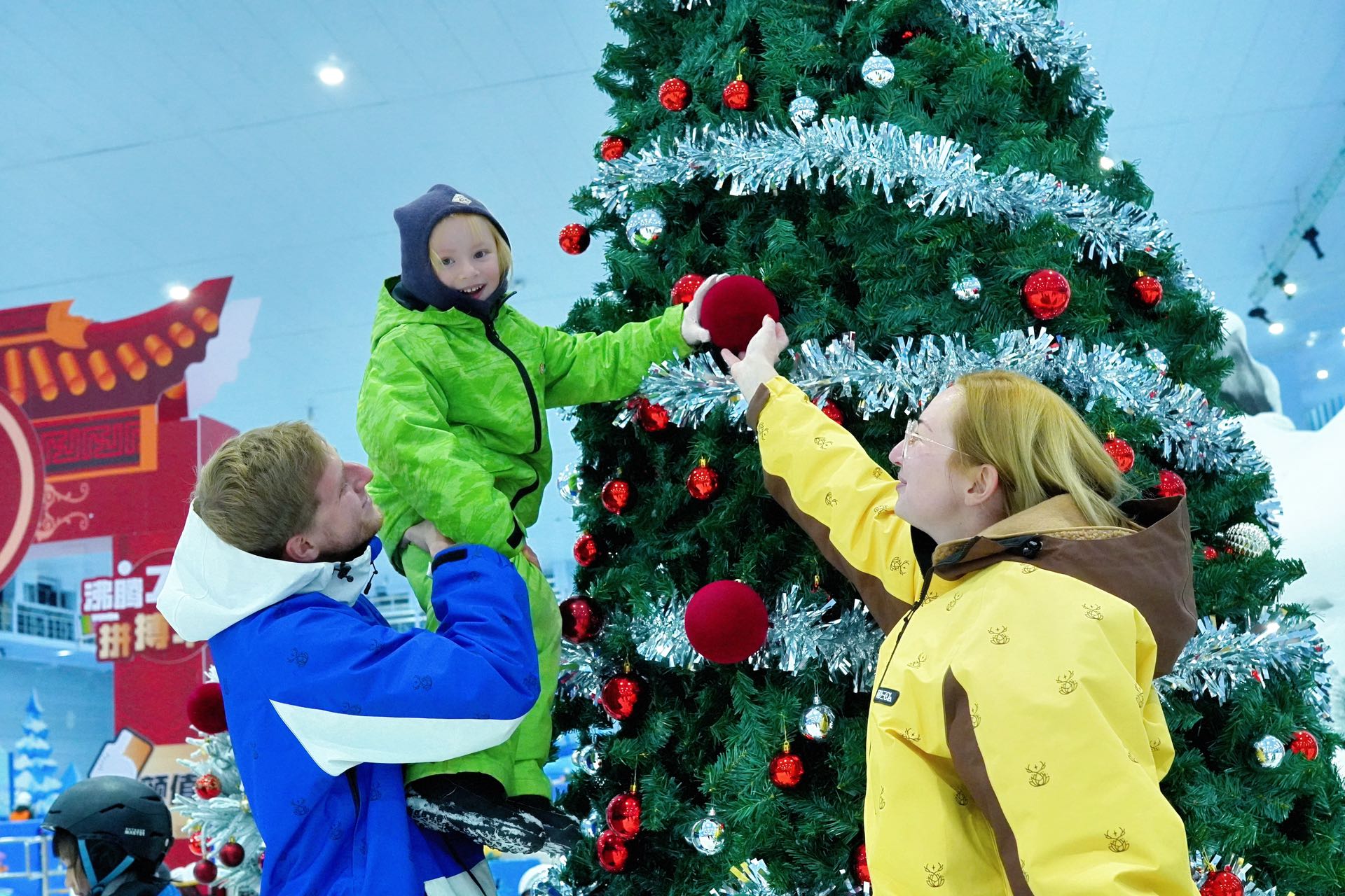 尼克一家在昆明体验滑雪↑