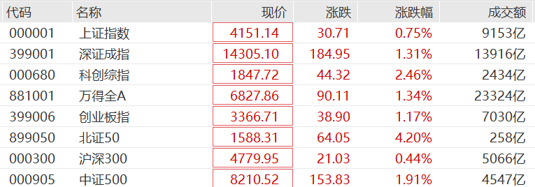 1月12日,A股三大指数集体拉升,截至午盘,沪指涨0.75%,深成指涨1.31%。创业板指涨1.17%。市场半日成交额超2.3万亿元,较上日此时放量超4781亿。全市场超3800只个股上涨,其中139只个股涨停。