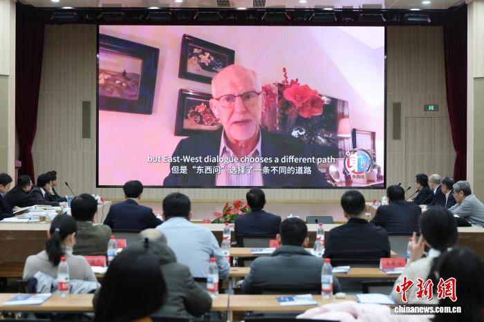 2025年12月29日,希腊前总理乔治·帕潘德里欧在中新社“东西问”创办五周年·智库对话上发表视频致辞。中新社记者 盛佳鹏 摄