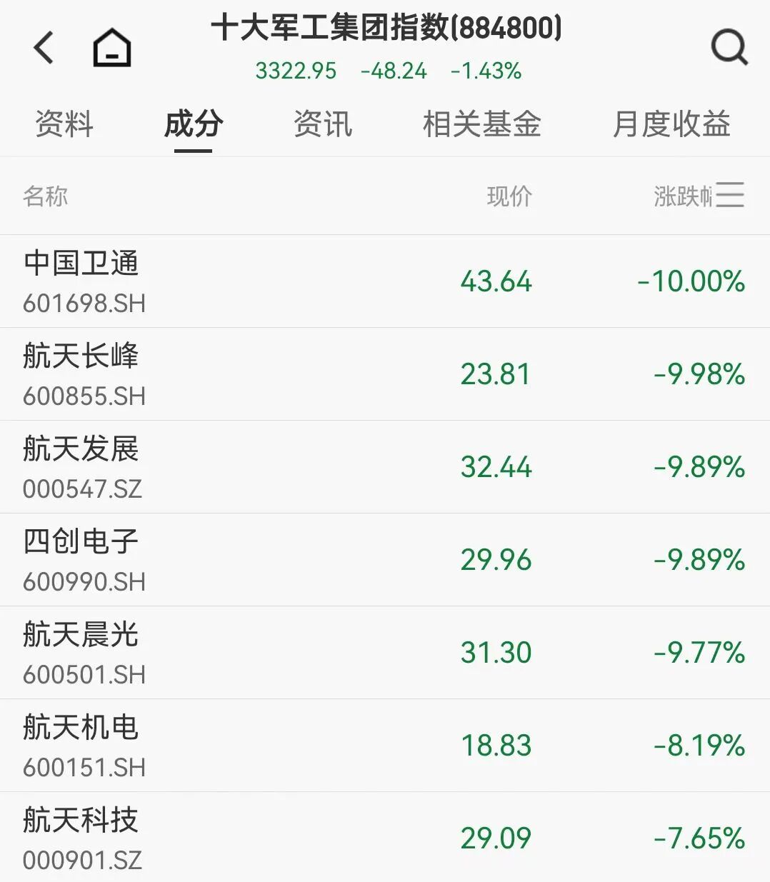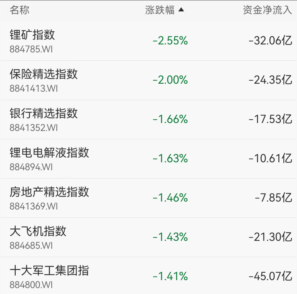锂矿股、保险股跌幅居前,中矿资源跌7%,天齐锂业跌4%,商业航天、军工板块板块继续重挫回调,中国卫通、航天长峰、航天发展等多股跌停。