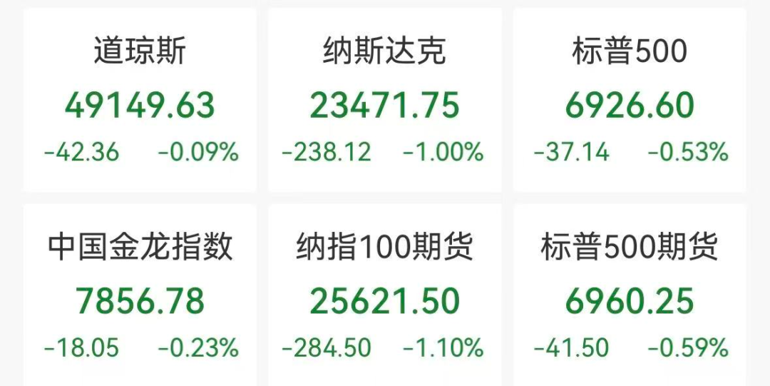 周三(1月14日),美国三大股指全线收跌,道指跌0.09%,标普500指数跌0.53%,纳指跌1%。
