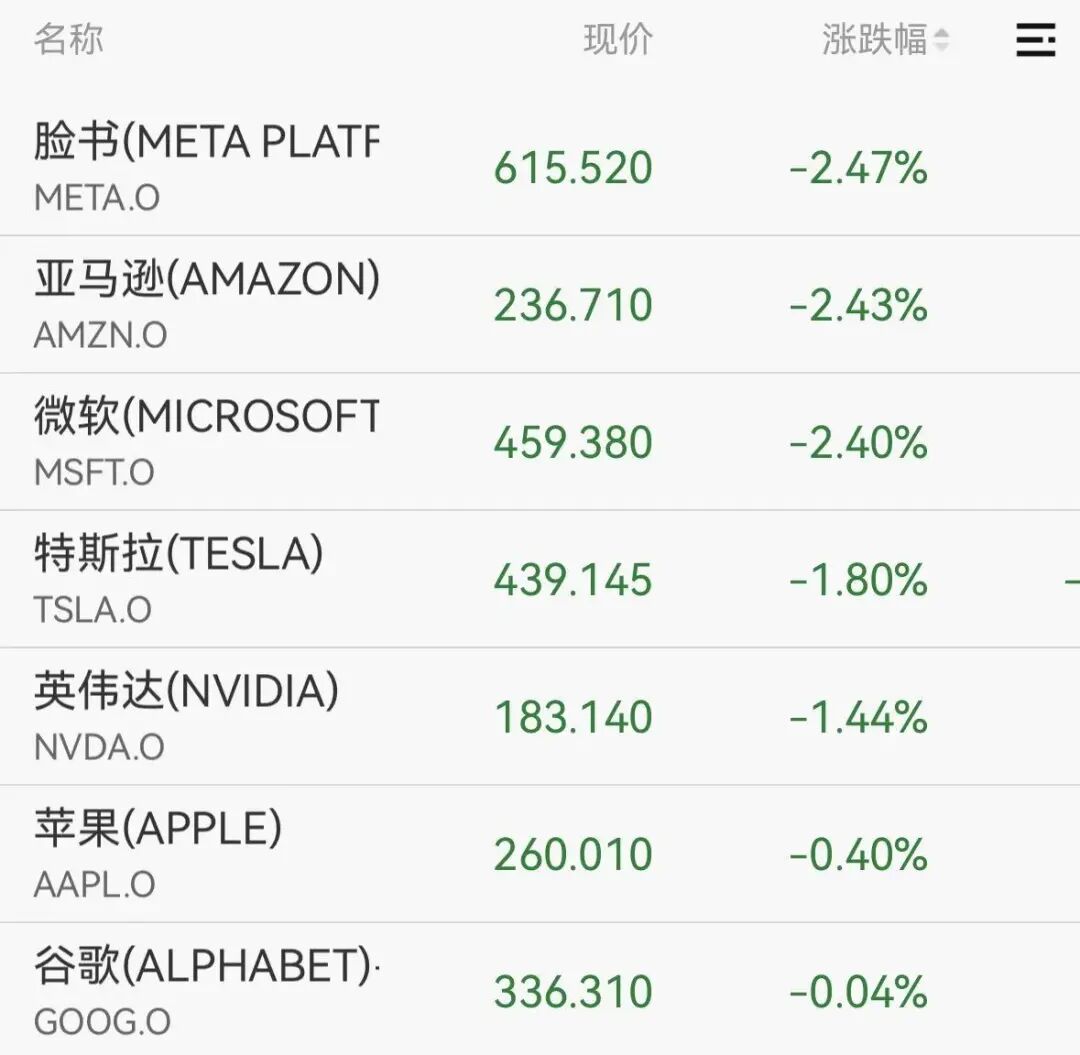 大型科技股全线下跌,个股方面,脸书、亚马逊、微软跌超2%,特斯拉跌近2%,英伟达跌超1%。