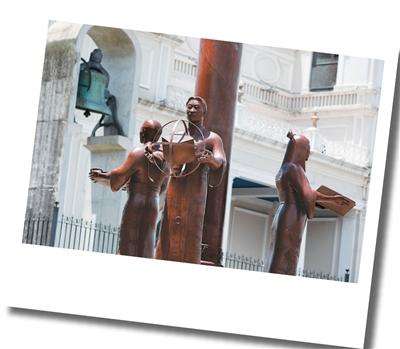 在哥斯达黎加首都圣何塞市中心的中国街,一座高7米的纪念碑巍然矗立。它以一根铜柱为中心,三尊华人铜像环立四周,分别手持书本、球体和炒锅,象征着旅哥华人在文化、科技、商业领域的杰出贡献。