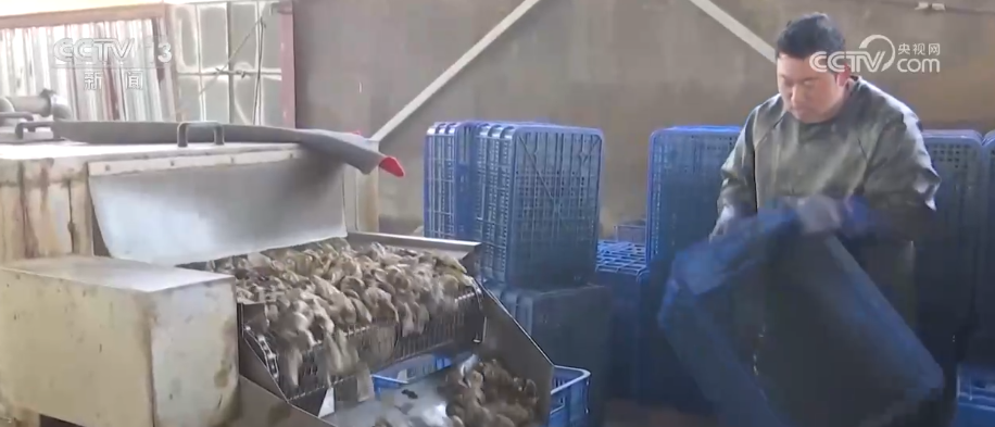 某水产公司负责人刘浩介绍,分拣之后就净化,净化之后用清洗机清洗,把泥沙清洗掉然后装袋打包,几乎每天加工五六万斤。