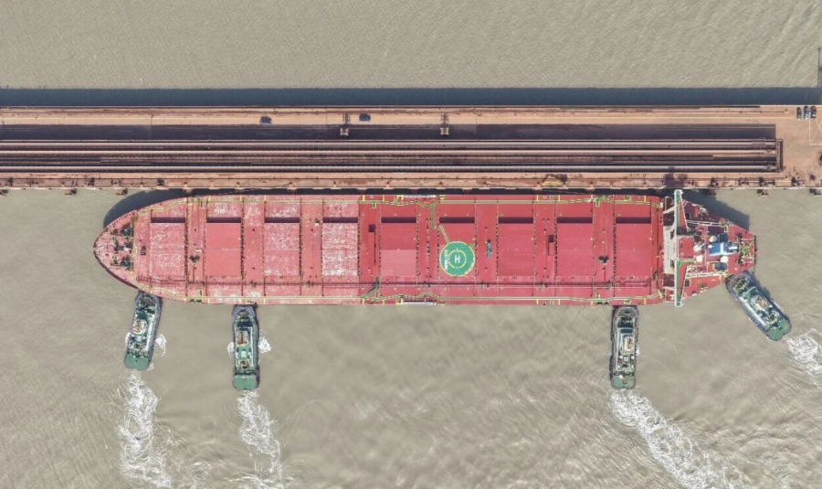首船西芒杜铁矿石运抵中国宝武马迹山港 图片来源:中国宝武微信公众号