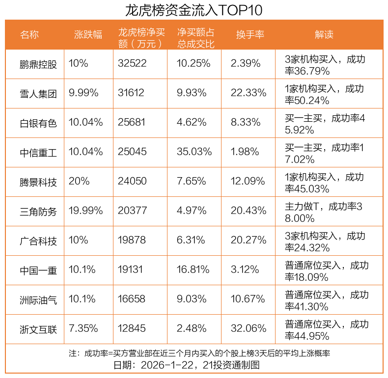 3.25亿资金抢筹鹏鼎控股,机构狂买湖南白银丨龙虎榜