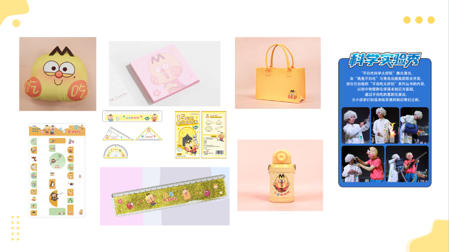 在IP商业化探索中,城市传媒以“我是不白吃”学科启蒙系列项目为标杆,实现了从单一出版产品到全产业链生态的价值跨越。该项目与头部动漫IP深度合作,精准聚焦K12教育市场,以“初中的知识,小学就能懂”为定位,将二次元美食家IP与物理、化学、生物等学科知识深度融合,开创“动漫+教育”新范式。