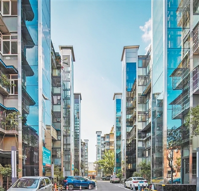 四川成都市,加装电梯后的南光印象小区。锦江区委宣传部供图