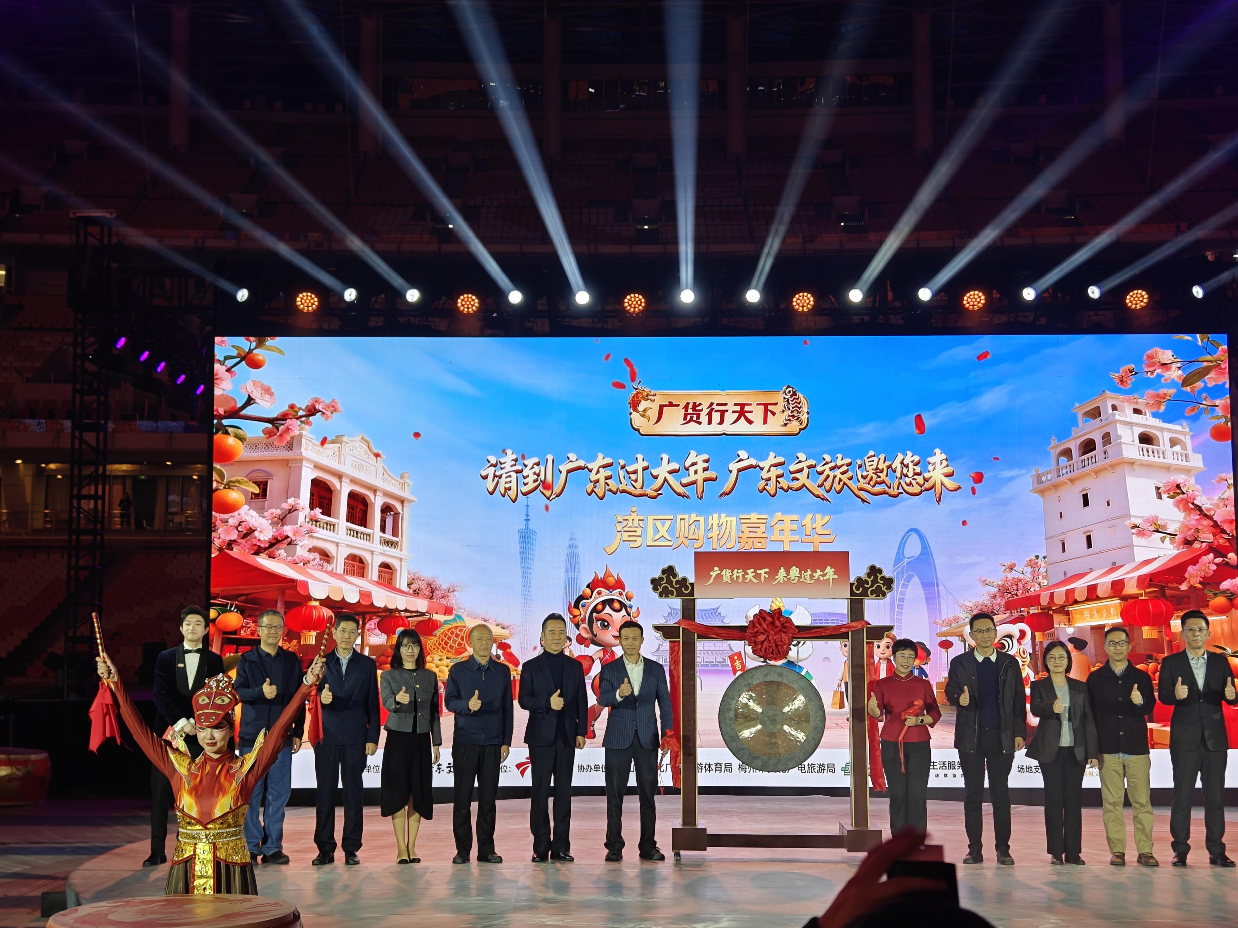 1月25日晚,由广东省文化和旅游厅主办的《广货行天下,来粤过大年——湾区购物嘉年华》活动在广州海心沙举行发布仪式。