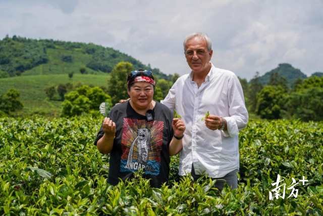 外国友人走进清远英德茶园。