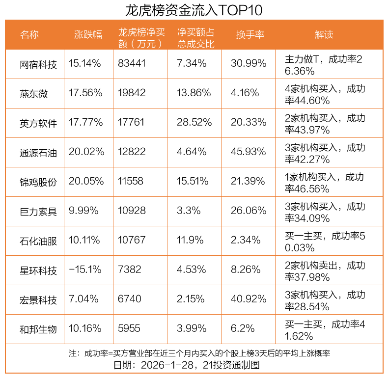 8.34亿资金抢筹网宿科技,机构狂买燕东微(名单)丨龙虎榜