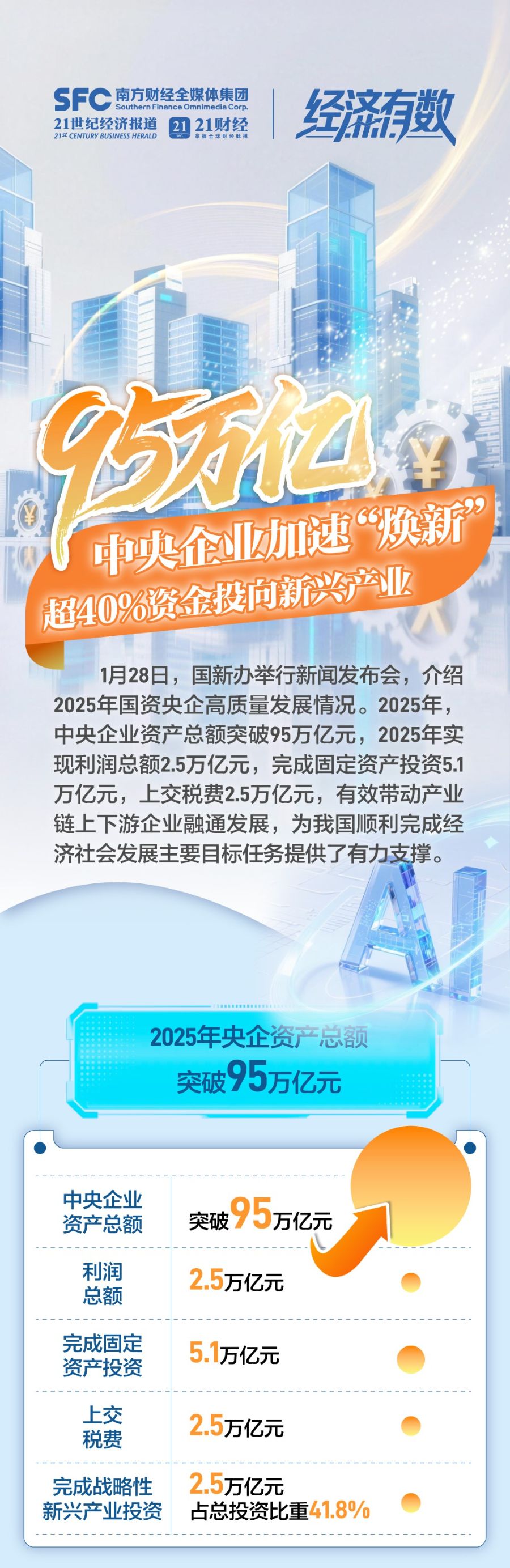 95万亿!中央企业加速“焕新”,超40%资金投向新兴产业