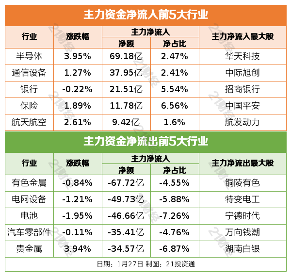 1月27日,市场探底回升,三大指数集体翻红,沪指涨0.18%,深成指涨0.09%,创业板指涨0.71%。沪深两市成交额2.89万亿,较上一个交易日缩量3532亿。盘面上,全市场超3400只个股下跌。从板块来看,芯片产业链持续拉升,贵金属概念延续强势,CPO概念表现活跃,太空光伏概念持续回升。超硬材料概念走强。下跌方面,煤炭、电池等板块跌幅居前。电池产业链集体下挫。