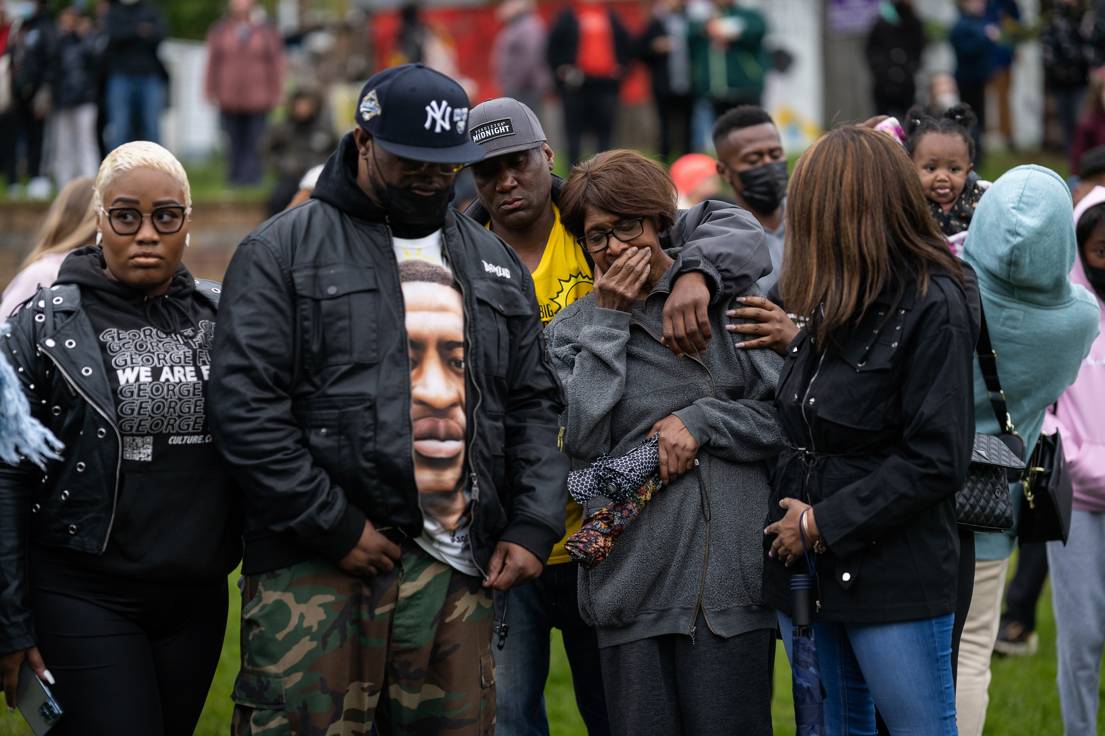 2022年5月25日,在美国明尼苏达州明尼阿波利斯市,弗洛伊德的家人参加哀悼活动,纪念弗洛伊德遇害两周年。新华社发(本·布鲁尔摄)