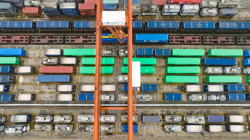 在贵阳国际陆港,满载1800多吨铝矾土的集装箱即将装车出发,运往广西北部湾钦州港
