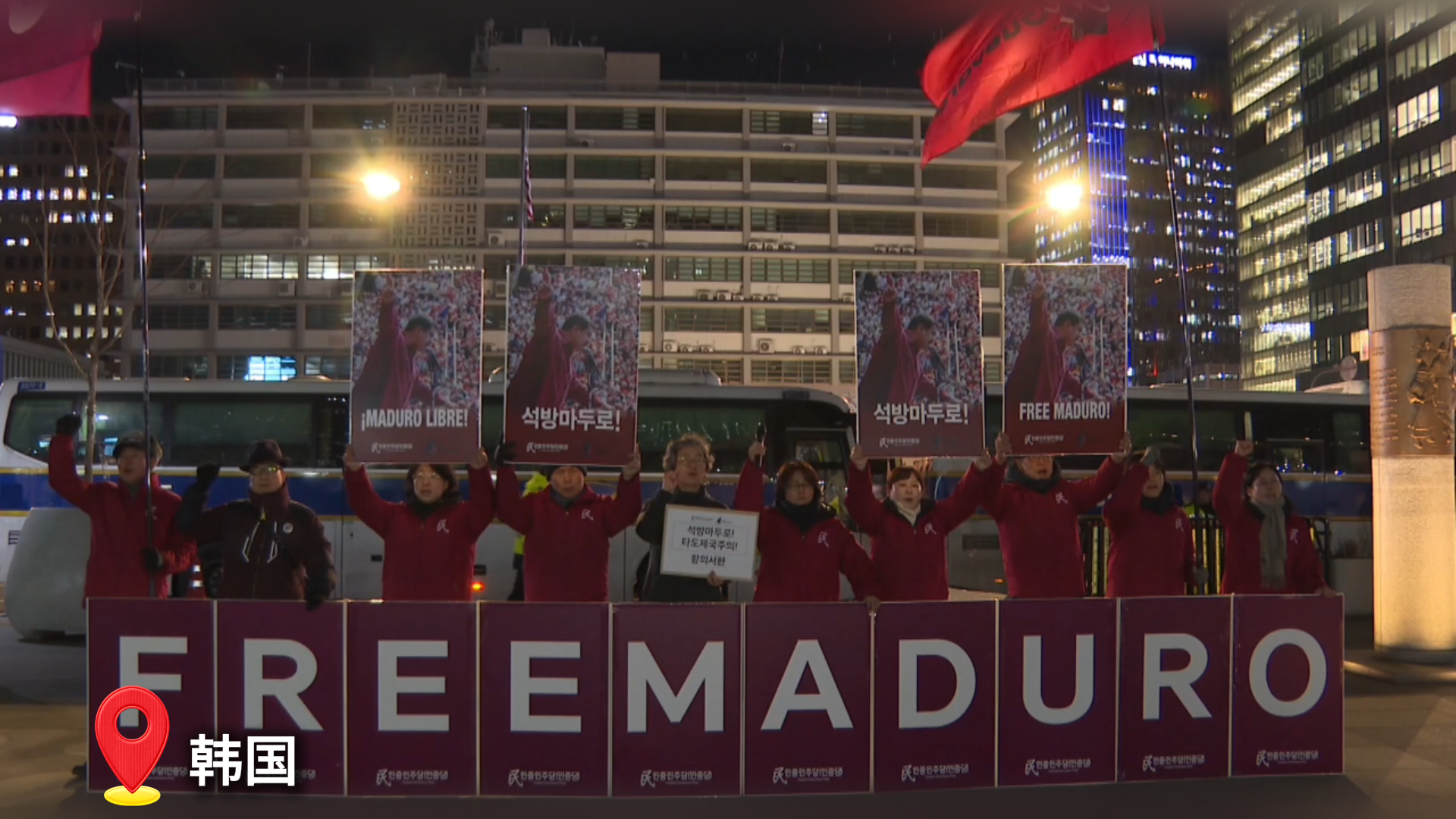韩国民众民主党5日在美国驻韩国大使馆前举行党内演讲会,并计划向美国大使馆递交抗议信,要求美方释放委内瑞拉总统马杜罗。