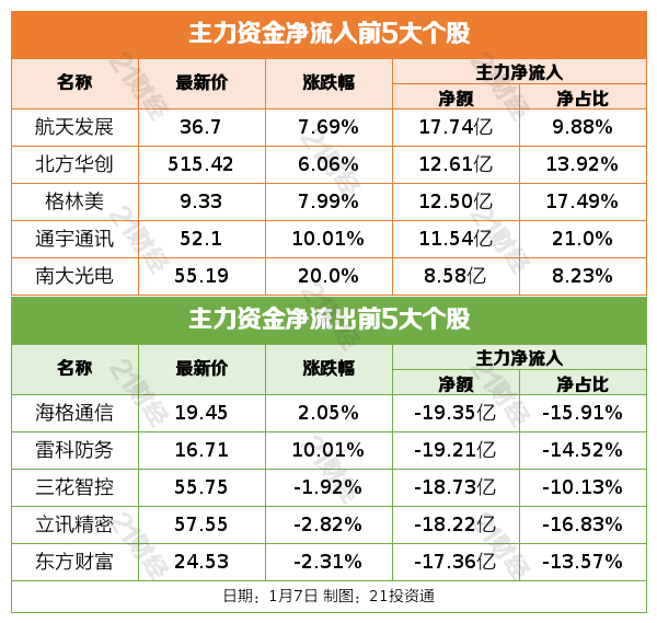 1月7日,沪指微涨录得14连阳,创业板指冲高回落。截至收盘,沪指涨0.05%,深成指涨0.06%,创业板指涨0.31%。沪深两市成交额2.85万亿,较上一个交易日放量476亿,成交额连续2个交易日超2.8万亿。 盘面上,市场热点快速轮动,全市场超3100只个股下跌。从板块来看,商业航天概念反复活跃,十余只成分股涨停,煤炭板块持续拉升,半导体设备股延续强势,光刻胶概念表现活跃,可控核聚变概念震荡走强。下跌方面,脑机接口概念震荡回落。