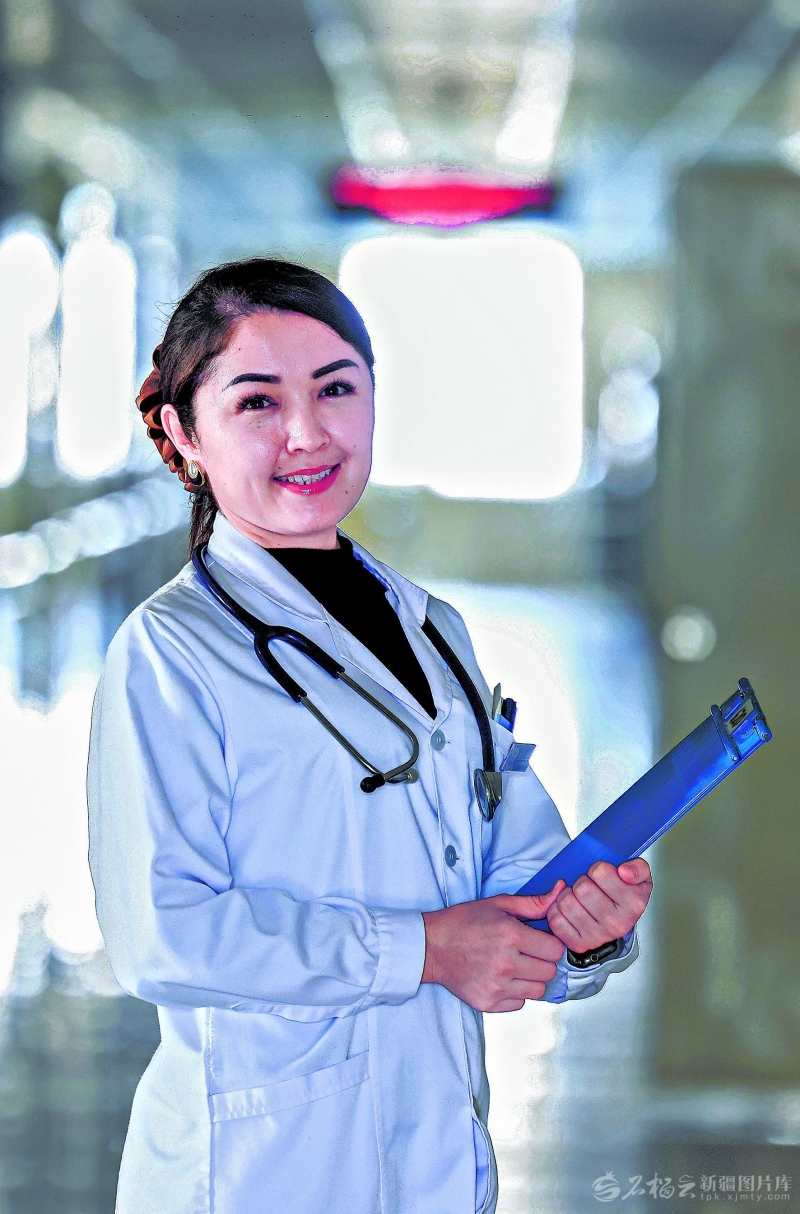 阿勒泰地区人民医院呼吸与危重症医学科医生 阿米娜·阿依腾:新的一年,我将守护您的呼吸健康,伴您平安度春秋。阿尔达克·拜斯汗摄