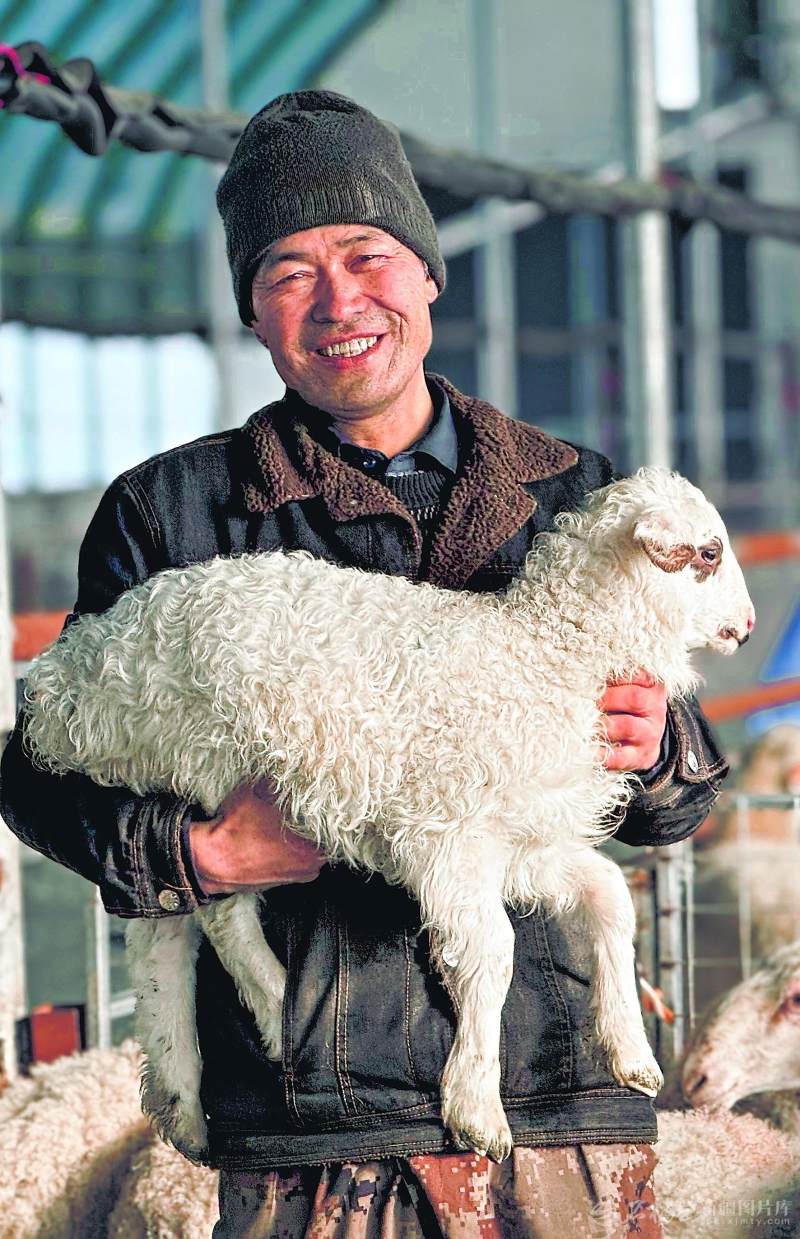 乌苏市塔布勒合特蒙古族乡牧民新村牧民 巴扎尔拜克·叶尔肯别克:希望30多只冬羔快快长大,今年卖个好价钱。曼朵拉摄