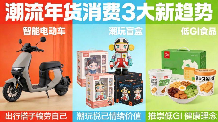 每一代人有每一代人的年货清单。年味渐浓,年货市场也在悄然发生着迭代升级。不同于传统年货聚焦酒水、高热量食品、服饰的模式,当代年轻人正以全新消费理念“重构”年货清单,智能出行、潮玩悦己、低GI健康成为3大核心关键词。专家表示,随着90后和00后成为年货置办“主力军”,九号智能电动车、泡泡玛特潮玩、健康低GI轻食等好物一齐跻身潮流年货,彰显出年轻群体理性与感性交织的消费新趋势。