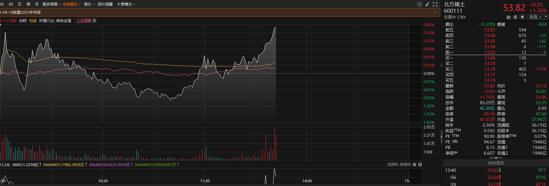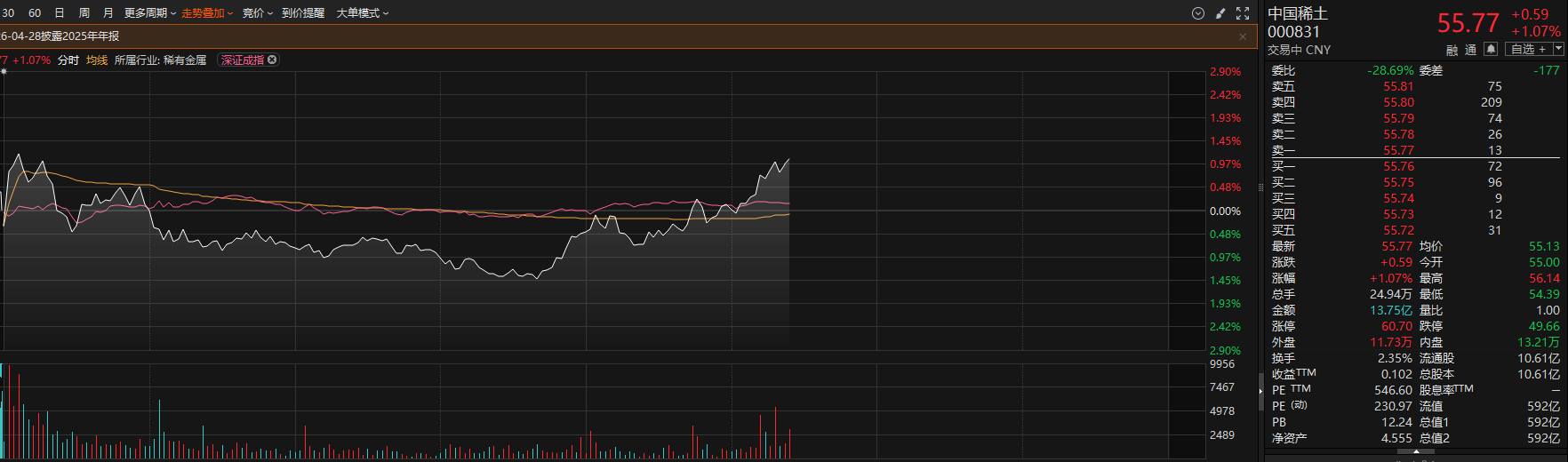 稀土永磁板块午后回暖,中国稀土、北方稀土午后持续拉升。