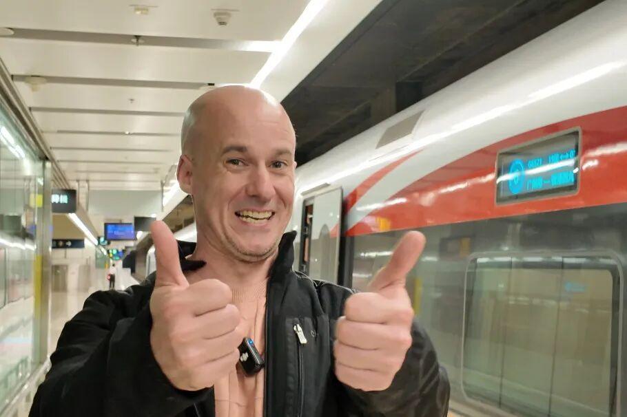 David从广州抵达香港(中国铁路广州局集团有限公司融媒体中心供图)