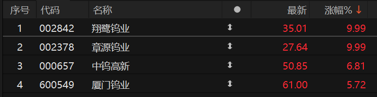 章源钨业上调长单采购报价 有色·钨概念股大涨丨盘中线索