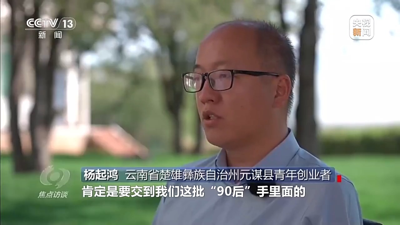 云南省楚雄彝族自治州元谋县青年创业者 杨起鸿:农业的“接力棒”肯定是要交到我们“90后”手里面的,遇到困难之后,我们敢于面对,所有后面这些困难都不是困难。我坚信农村这么广阔的舞台,是足够我们这批“新农人”去舞动人生的。