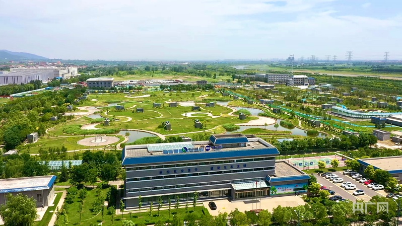 俯瞰晋阳污水处理厂与汾河景观带融为一体(央广网记者 张晋鹏 摄)