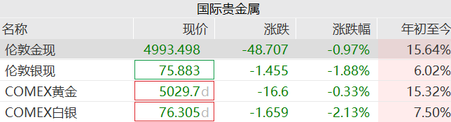 2月16日,现货黄金向下跌破5000美元,日内跌近1%,现货白银跌超1.4%。