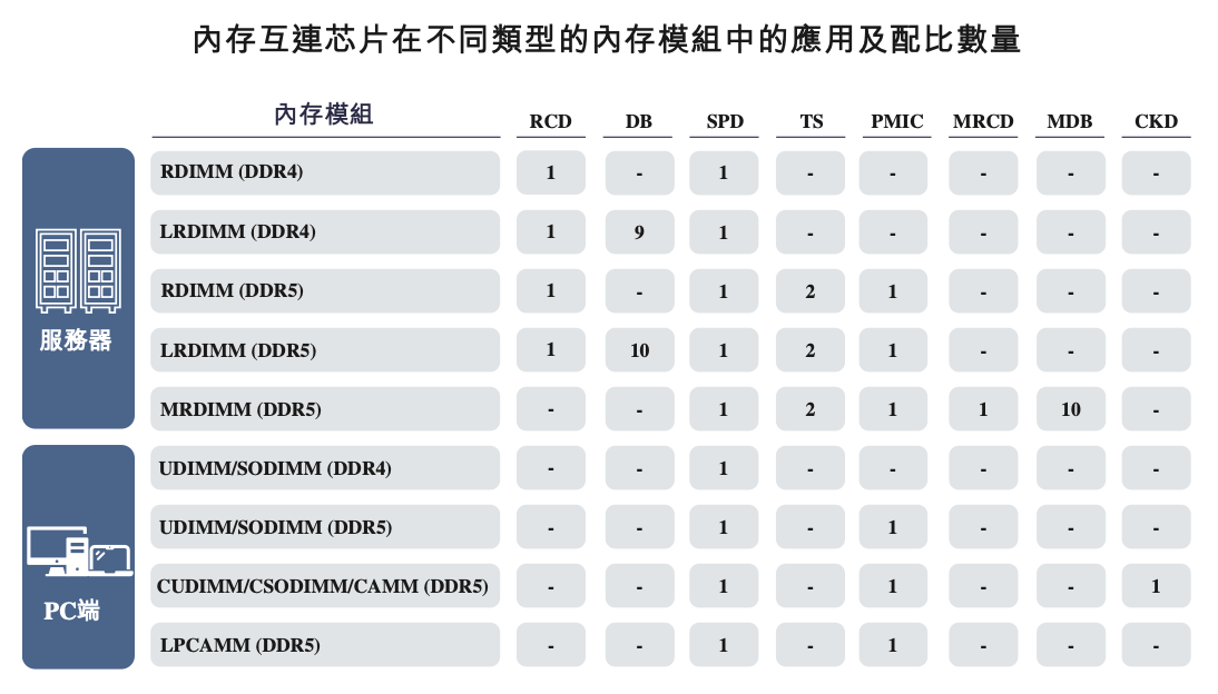 内存互连芯片方面,大模型训练与推理对算力的迫切需求,正持续推高内存容量和带宽升级。以GPT为代表的大模型,参数规模突破万亿级,推动AI服务器内存配置显著升级——单台主流AI服务器通常需部署超20条DDR5内存模组,内存容量和数量远超通用服务器。