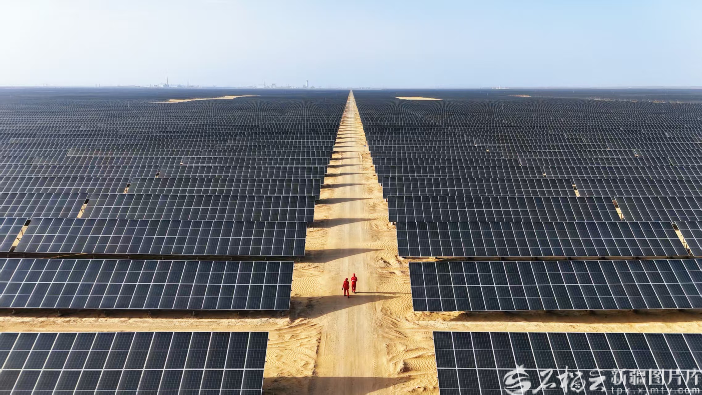 2月18日,库尔勒上库高新技术产业开发区晴空万里,阳光倾洒在广袤的戈壁之上,数百万块光伏板连片铺展,汇成波光粼粼的“蓝色海洋”。塔里木油田上库高新区130万千瓦光伏项目正将戈壁暖阳转化为清洁绿电。