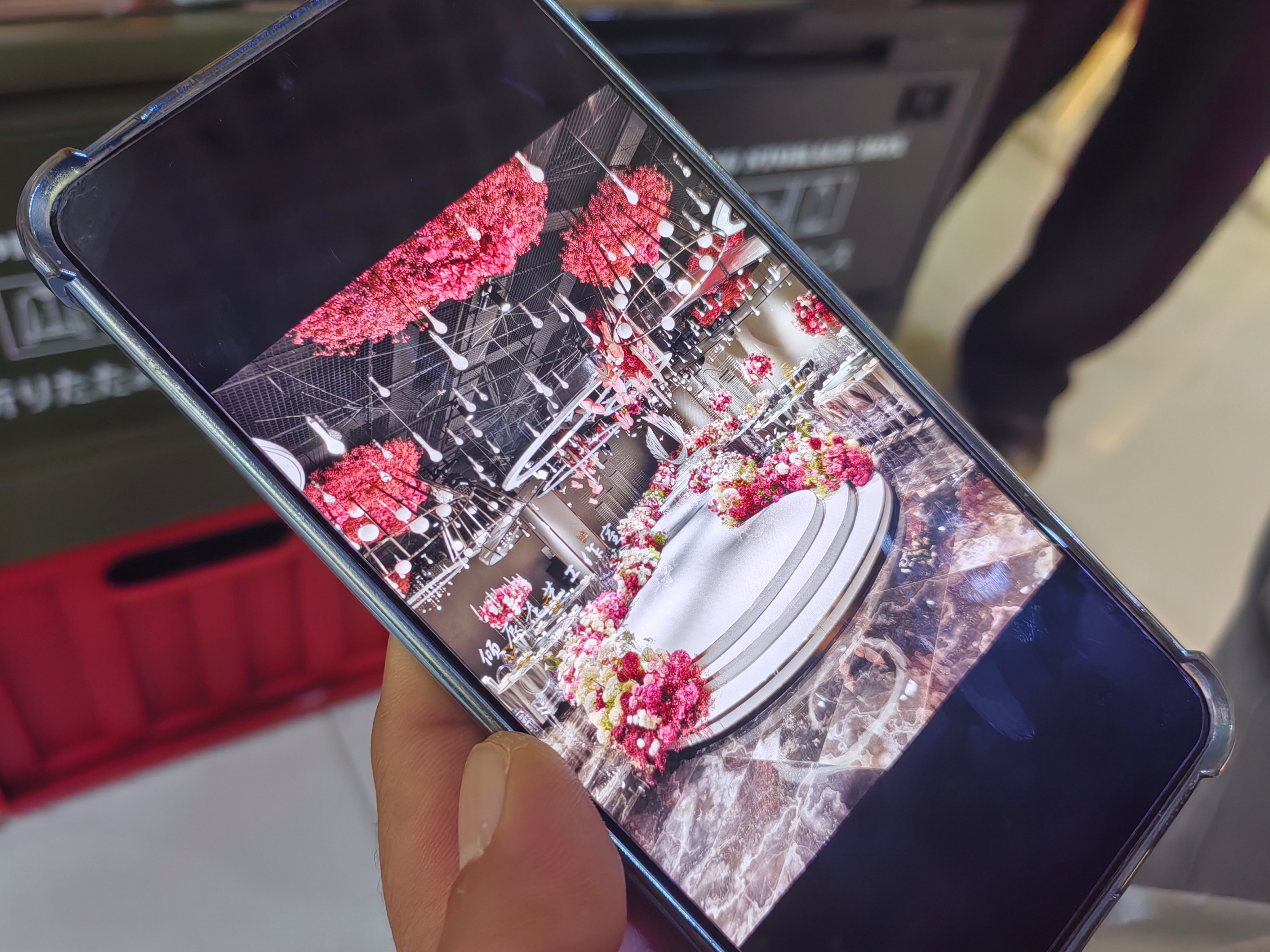 花艺培训学校的学员展示自己曾参与的花艺场景布置照片。新华社记者荆昭延 摄