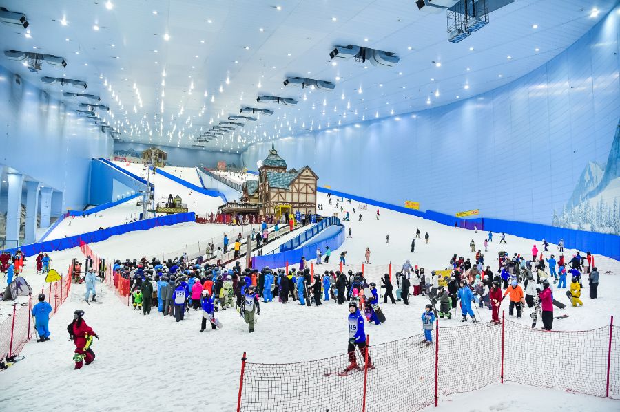 在深圳华发前海冰雪世界,游客滑完雪后,可以直接进入配套的商业区吃饭、购物或逛装备店,运动、休闲与消费在同一个城市单元内自然衔接。