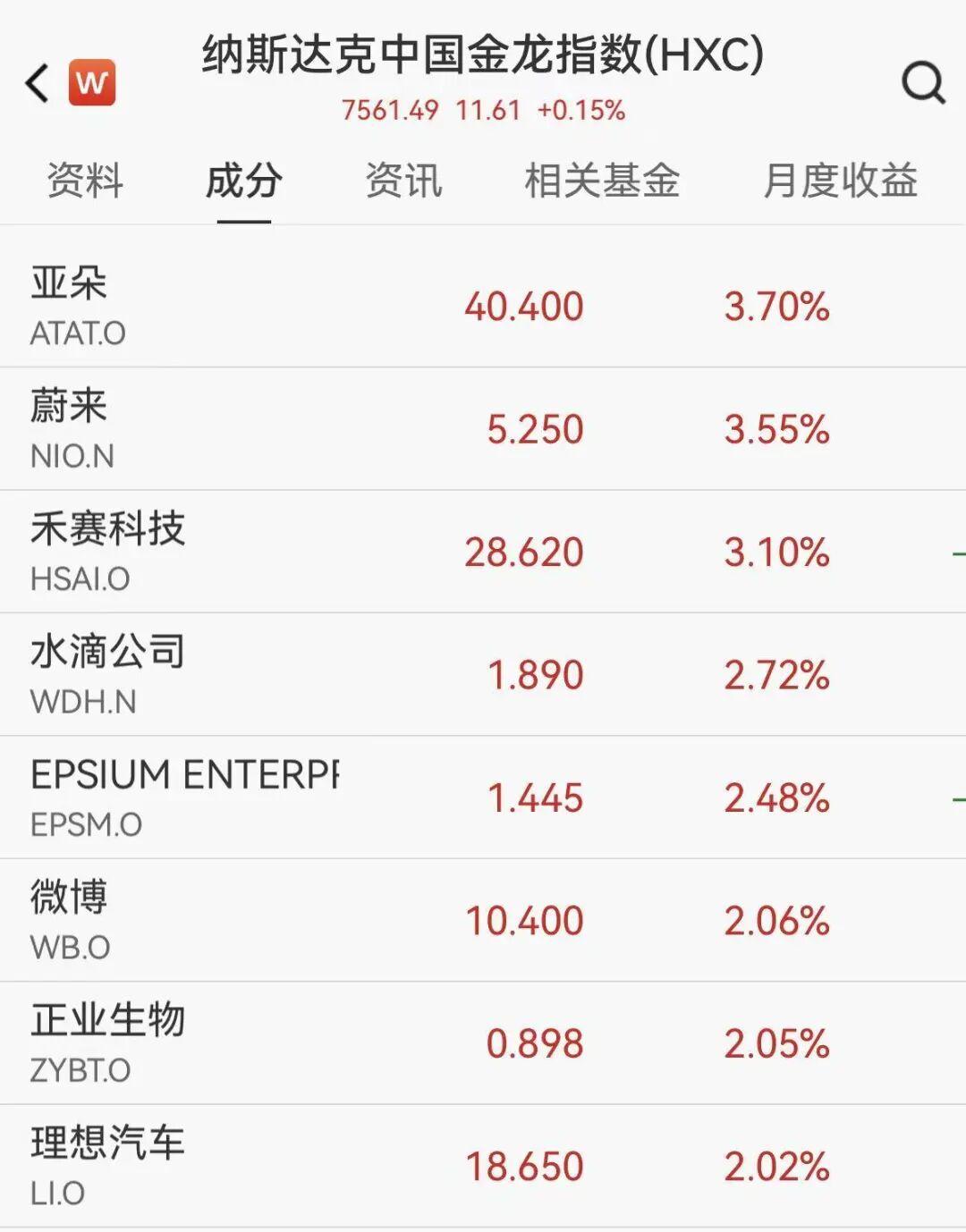 中概股多数上涨,亚朵、蔚来、禾赛科技涨超3%,理想、微博涨超2%。