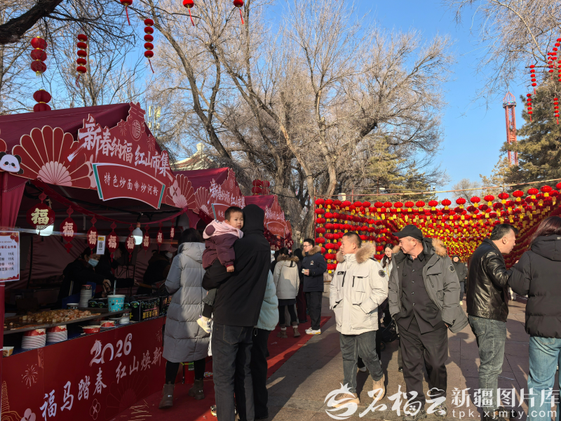 春节期间,乌鲁木齐红山公园开设“新春纳福红山市集”。石榴云/新疆日报记者 于江艳摄