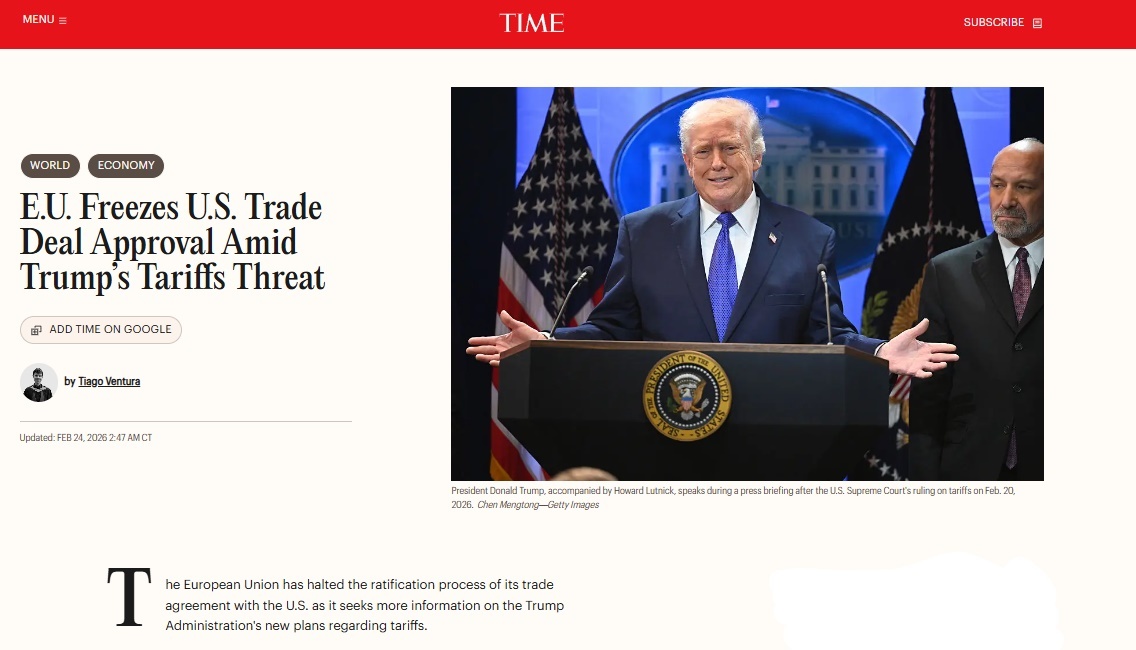 美国《时代》周刊网站报道截图