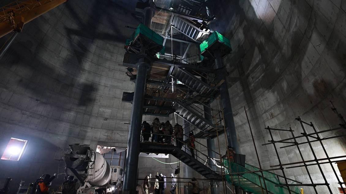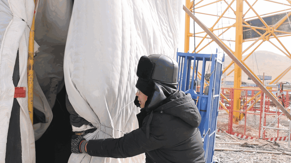 闪电新闻记者在采访中发现,工地白天气温10摄氏度以上,可到了晚上,气温会下降到零下30摄氏度左右。超低气温会影响混凝土强度,直接决定工程质量与安全。在吸热塔内,记者看到,数台电暖器不断排出暖风,把塔内的温度提升到10摄氏度以上。
