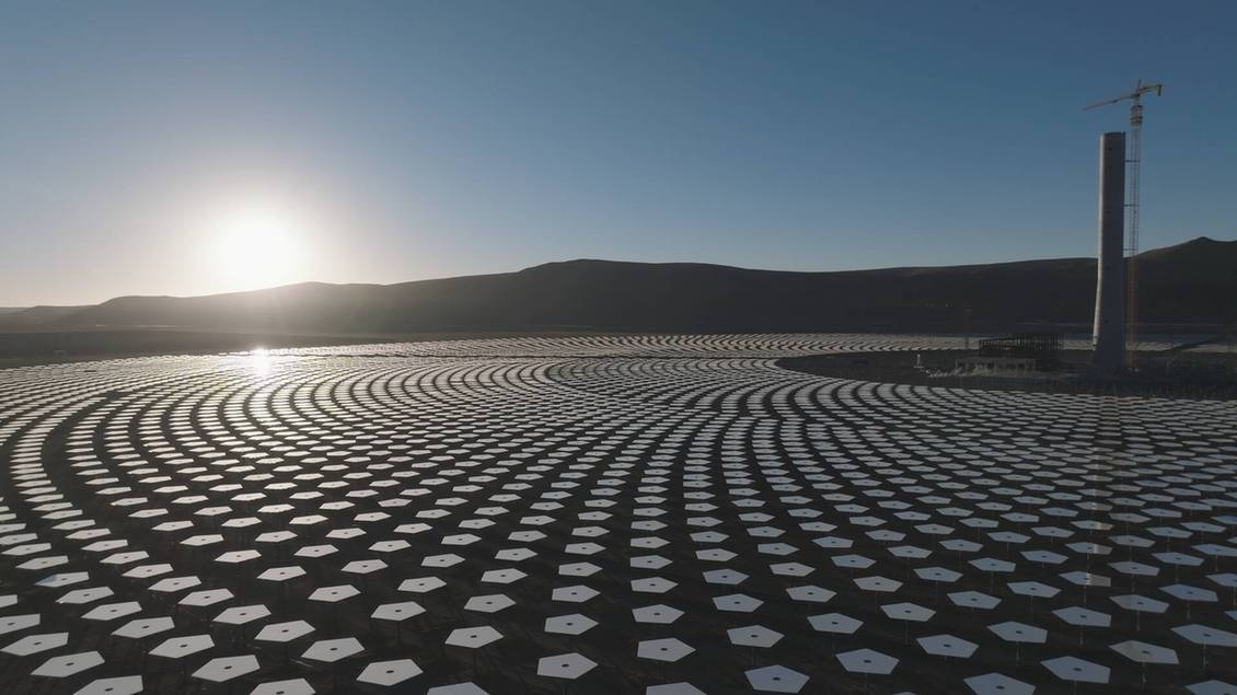 【编者按】安多县位于西藏北部,平均海拔5200米,空气稀薄,昼夜温差大,被视为“生命禁区”,长期遭受电力短缺困扰。当地启动了一个极具挑战性的绿色能源项目,在海拔4650米的高原上,建设一座100兆瓦光热发电站,它也是全球海拔最高的塔式光热电站。项目将来建成后,15927台定日镜环绕着吸热塔,随太阳转动反射太阳光到塔顶,将太阳能转换为热能后发电,犹如一朵“太阳花”绽放在高原之上。