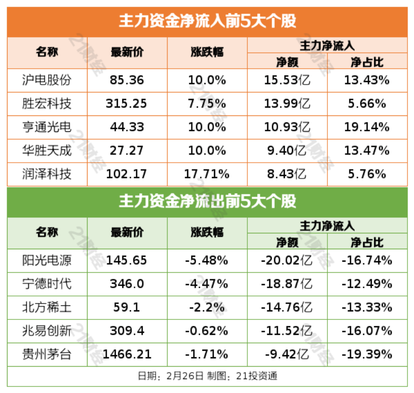盘面上,市场热点快速轮动,全市场超2800只个股下跌。从板块来看,算力硬件方向涨幅居前,PCB、CPO、液冷服务器、算力芯片概念均表现强势,电力板块走强,燃气轮机概念集体大涨,小金属概念表现活跃,环保股尾盘拉升。下跌方面,影视院线、保险、房地产等板块跌幅居前。其中影视院线概念股连续大跌。