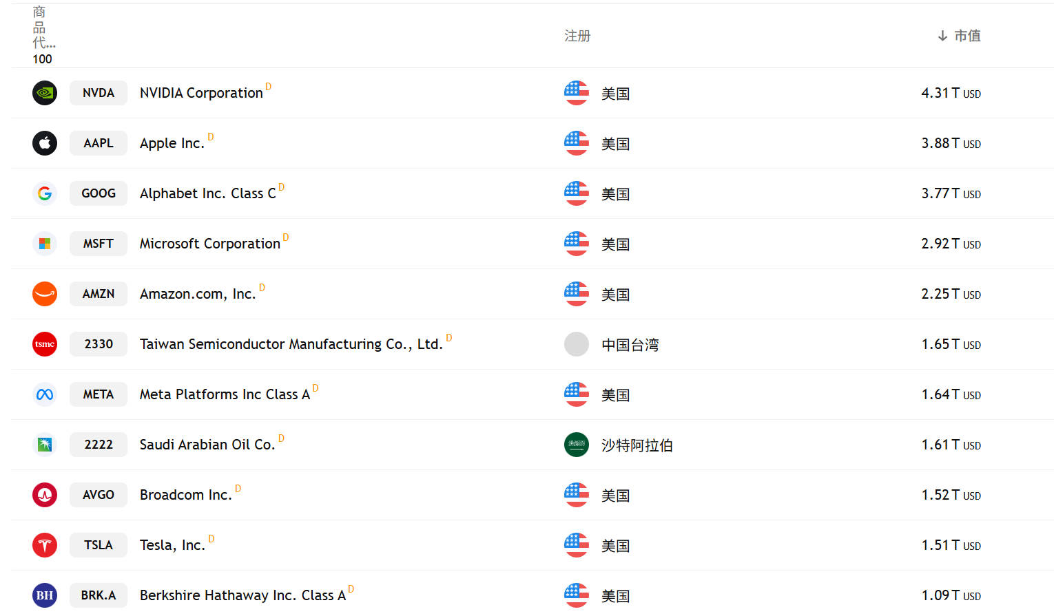 (按市值计算世界最大的公司)