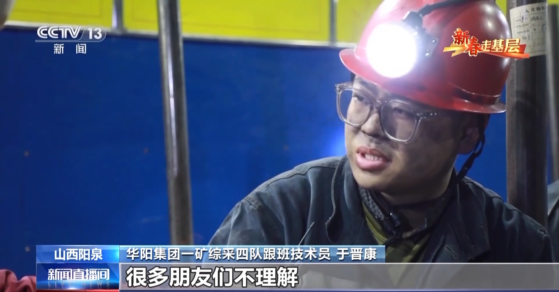 华阳集团一矿综采四队跟班技术员 于晋康:刚开始吃不消,真吃不消,光走路就感觉累得不行。尤其刚开始时候,很多朋友们不理解,为什么你一个大学生,好像是上了半天学,之后选择煤矿,会有这样的不理解。