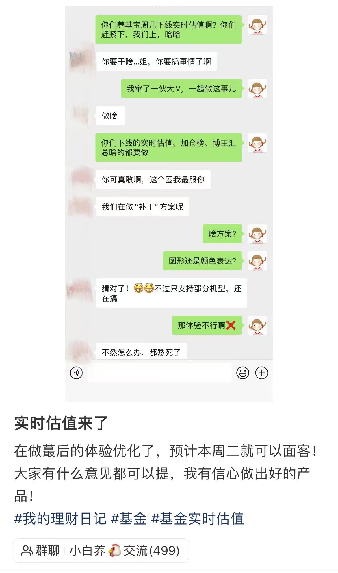 图:一小红书博主表示将开发实时估值工具
