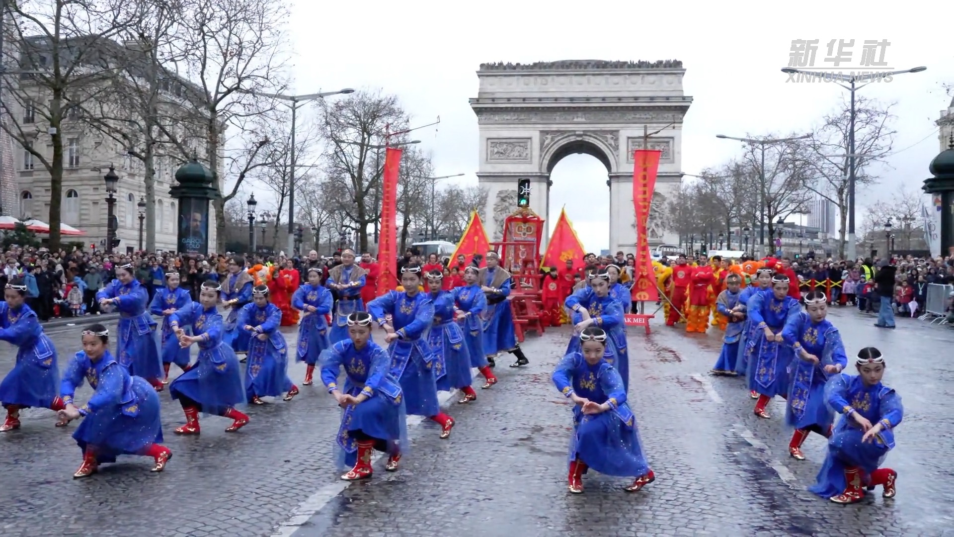 1日下午,由机器人引领的春节巡游表演方阵走上法国巴黎香榭丽舍大街,紧随其后的是舞龙舞狮、民族舞等传统表演,吸引了市民和游客驻足观看。在喜庆的锣鼓声中,法国这条地标性大道进入“春节时间”。