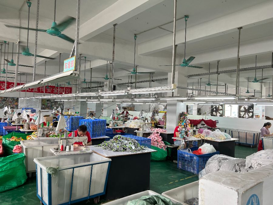 玩乐童话车缝部工人赶制产品,受访企业供图