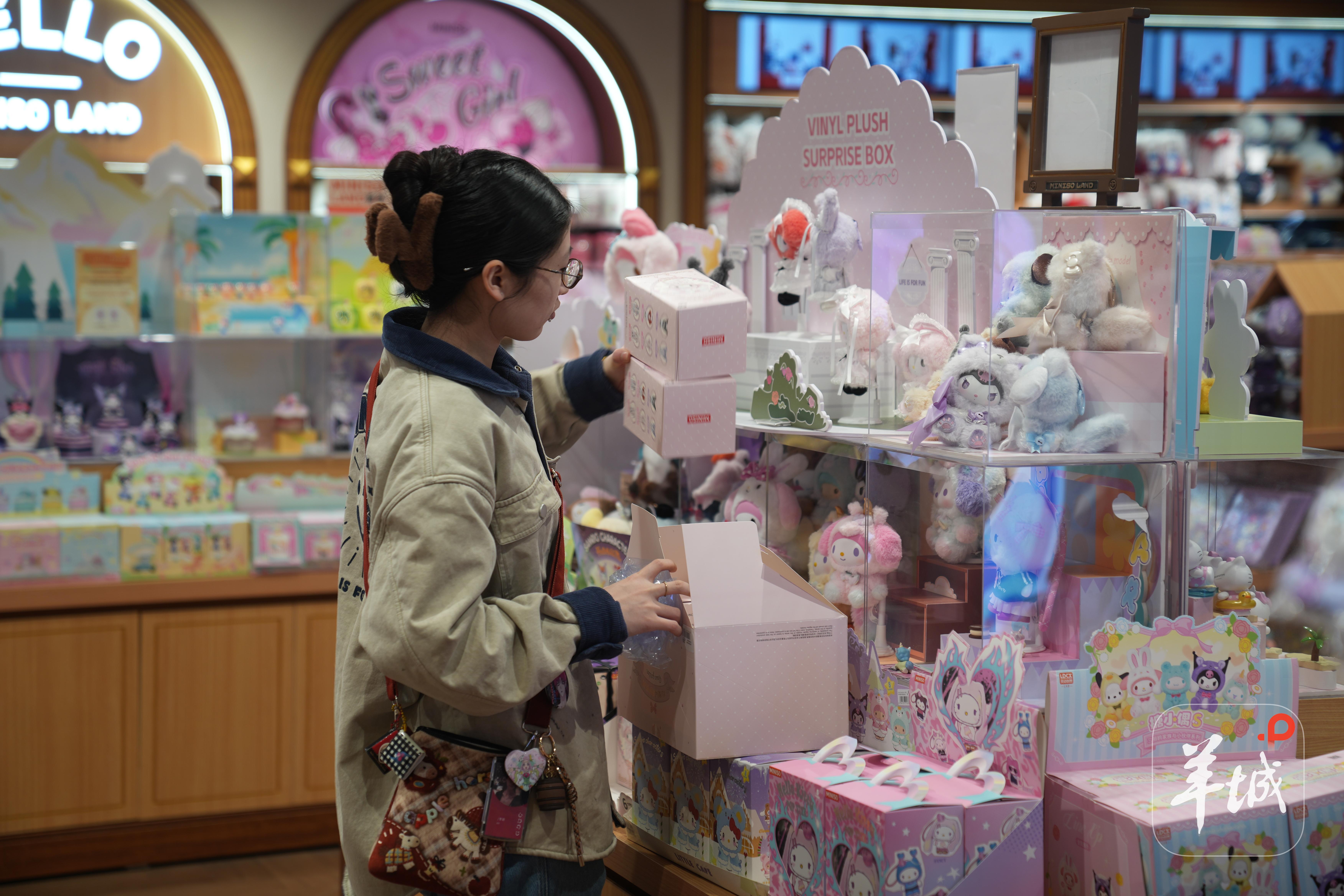 盲盒、徽章、搪胶、毛绒……在北京朝阳区THE BOX朝外年轻力中心,名创优品MINISO LAND北京壹号店正以一系列“新广货”吸引着年轻一代的目光。