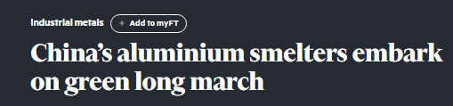 英媒:中国铝冶炼厂开启绿色征程