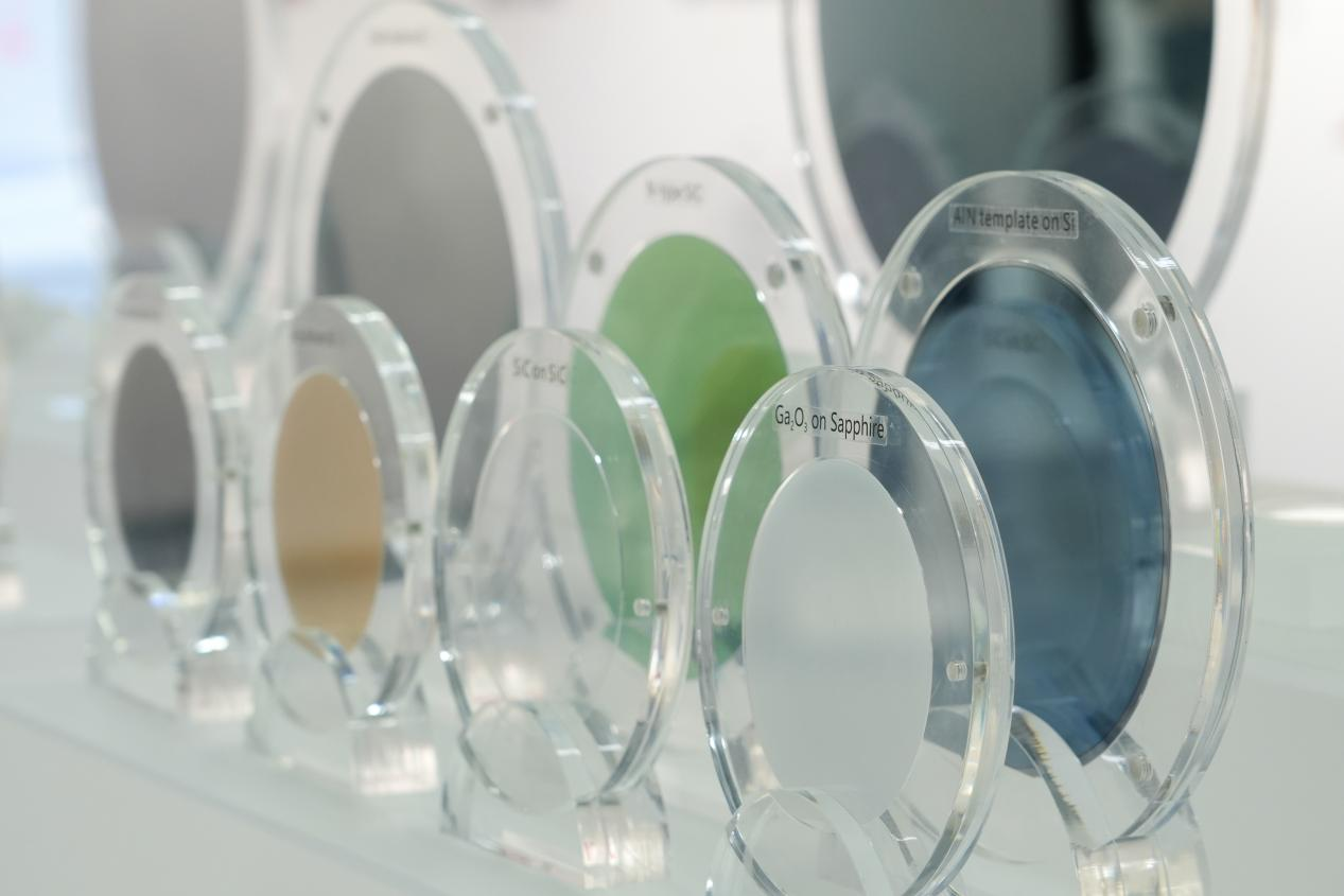 九峰山实验室展厅内展示的化合物半导体材料相关研究成果(央广网记者 邓子依 摄)